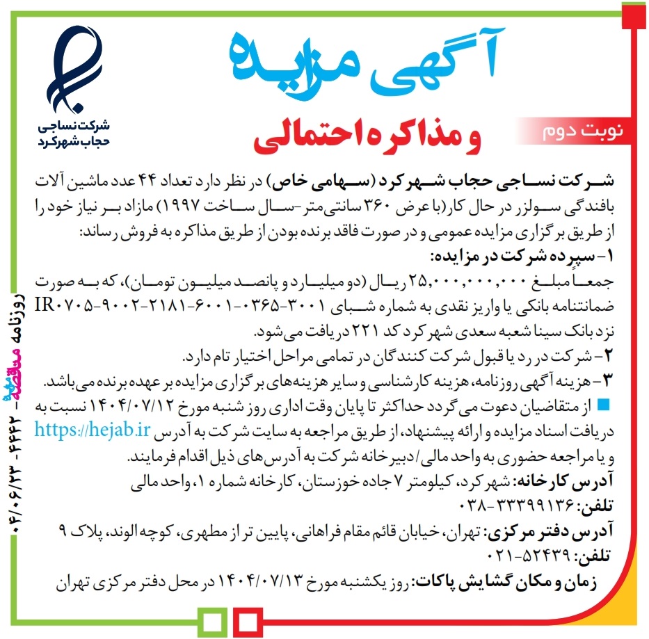 آگهی شناسایی و ارزیابی تامینکنندگان